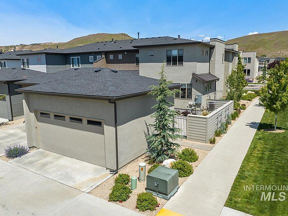 Come view this CORNER unit, low maintenance townhome which has gorgeous Barber Valley and foothill views from every window. This two-story home offers high-end finishes throughout. The gourmet kitchen includes a Thermador 6-burner stovetop, Bosch appliances, dry bar and wine fridge. Walk-in pantry w/ sliding barn door. Expansive counter space w/ extra storage. Main-level office in addition to 3 spacious bedrooms and 2.5 baths. Owner's suite on the second level provides a walk-in closet, dual vanities, tile floors and shower. The spacious courtyard provides privacy and access to the 2 car garage, which includes additional storage space for a home gym or for parking those toys. The Barber Valley and East Boise is a live/play paradise for all. Fly-fish on the Boise, hike/bike the Ridge to River trails, ski Bogus, boat Lucky Peak, eat at Bown's crossing, shop downtown! Excellent new school options also in the area. Reside in a place where it all unfolds.