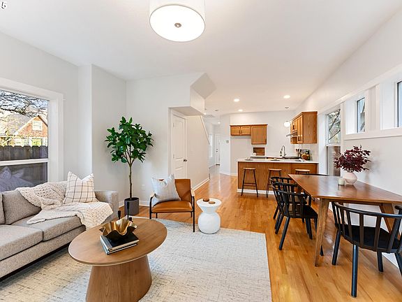 Easy living in NE Portland. Blocks to Wilshire Park + Fremont shops + Alberta Arts fun. Walk Score 76 Bike Score 99. Spacious main floor with open floor plan. Kitchen features new quartz counter and updated stainless steel appliances including a gas range. Walk-in pantry for added storage. Hardwood floors on main floor with cork floors upstairs and wool carpets on stairs. Living room has a gas fireplace and slider to fenced back yard. Yard features stone patio, raised beds and lots of native plants + bistro lights for entertaining charm. Upstairs has three spacious bedrooms & small loft space. Primary bedroom with vaulted ceilings, double closets, private suite. Both bathrooms feature new vanities, mirrors, marmoleum floors and lighting. Brand new tear-off 30 year roof with 10 year transferable warranty. Solar panels make this home extra efficient - HES 9! [Home Energy Score = 9. HES Report at https://rpt.greenbuildingregistry.com/hes/OR10235167]
