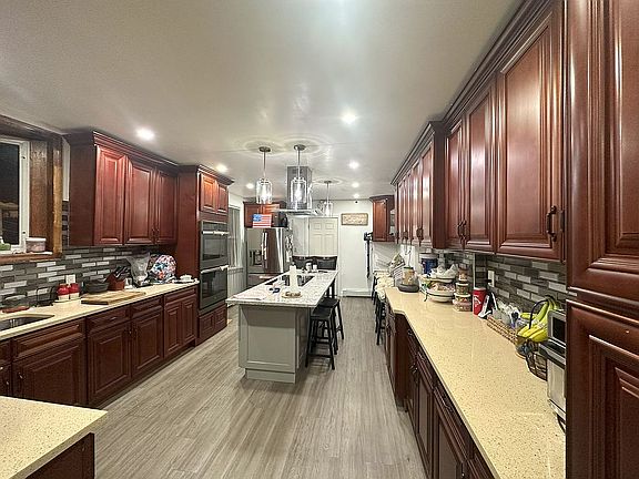 Welcome to this welcoming 1-family home nestled in the heart of the vibrant Belmont section of the Bronx. Built in 1899, this renovated spacious three-story home offers the perfect blend of modern comfort, some original detail and plenty of room for a family. You enter the home through its three-season, two-story, front deck, which insulates you from the city, provides extra living space and functions as a foyer. From the deck, walk into the open concept first floor, comprised of a living room, bathroom, and a newly renovated kitchen. The kitchen counters and center island are granite. The large center island offers a breakfast bar and an induction cooktop. Dual wall ovens and tons of cherry cabinets offer plenty of cooking and storage space. The back door off of the kitchen leads to a second private deck with plenty of space to sit, entertain and enjoy meals.