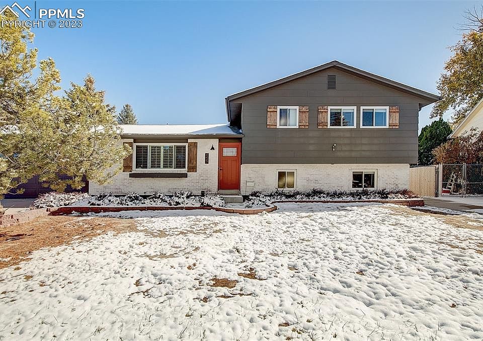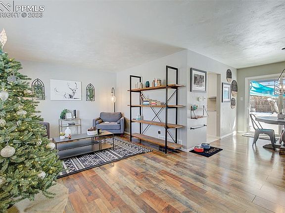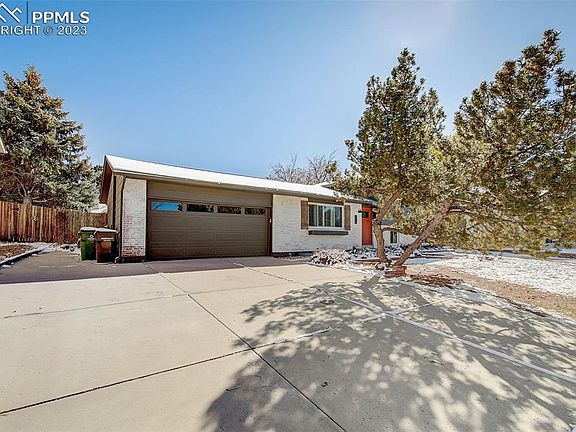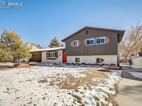 Welcome home to this completely renovated, well maintained home that combines classic charm and modern elegance with a gorgeous view of Pikes Peak from the front door. This 4 bedroom, 3 bathroom home features wood flooring, newer vinyl windows, central A/C and a cozy gas log fireplace in the family room. The primary bedroom features an updated 3/4 en suite bathroom. ALL appliances stay including the washer and dryer. Oversized, finished garage has built in cabinets. Full sprinkler system with drip zones. A gardener's delight with planting beds all around and a greenhouse. There is a second driveway and wide-gate access for boat, trailer or RV parking area in the backyard. There is also an 8x20 workshop/storage shed. You will love the large covered patio, perfect for quiet nights or outdoor entertaining. There is also another sitting area with a cozy firepit. You will love the additional finished basement space with bar. A perfect area for a giant TV for a media/theater room and indoor entertaining. There are a lot of possibilities with the ample finished space in this home. Close to shopping and restaurants. Convenient central location and a quiet street.