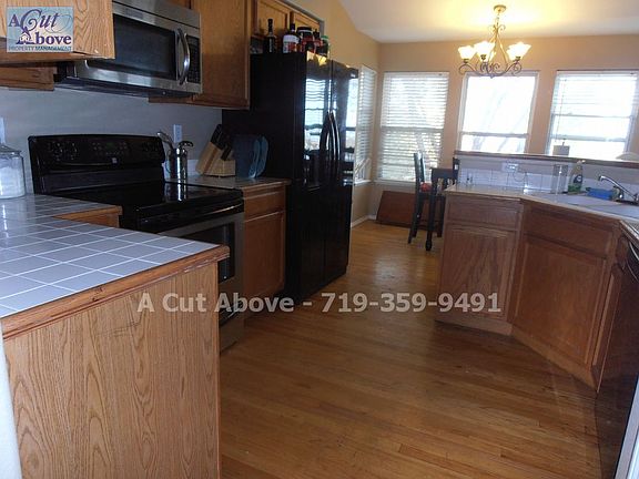 5 bedroom Cheyenne Meadows rancher with finished basement located in a cul-de-sac. Kitchen has stove, refrigerator, dishwasher and microwave. Main floor has 3 bedrooms and 2 baths, lower level 2 bedrooms and 1 bath. Master bath comes with 5 piece bath set plus laundry room comes with washer and dryer. Gas fireplace, Formal dining area, deck, and pet friendly. Close to PPCC and Fort Carson. Includes ADT security system with 1 year lease. This is a no smoking / no medical or recreational marijuana property. Call today to for a showing 719-359-9491. To see all our listings please visit us at www.acutabovemanagement.com Cats or dogs - max. 3 - 95 lbs. full grown $250 pet deposit per pet