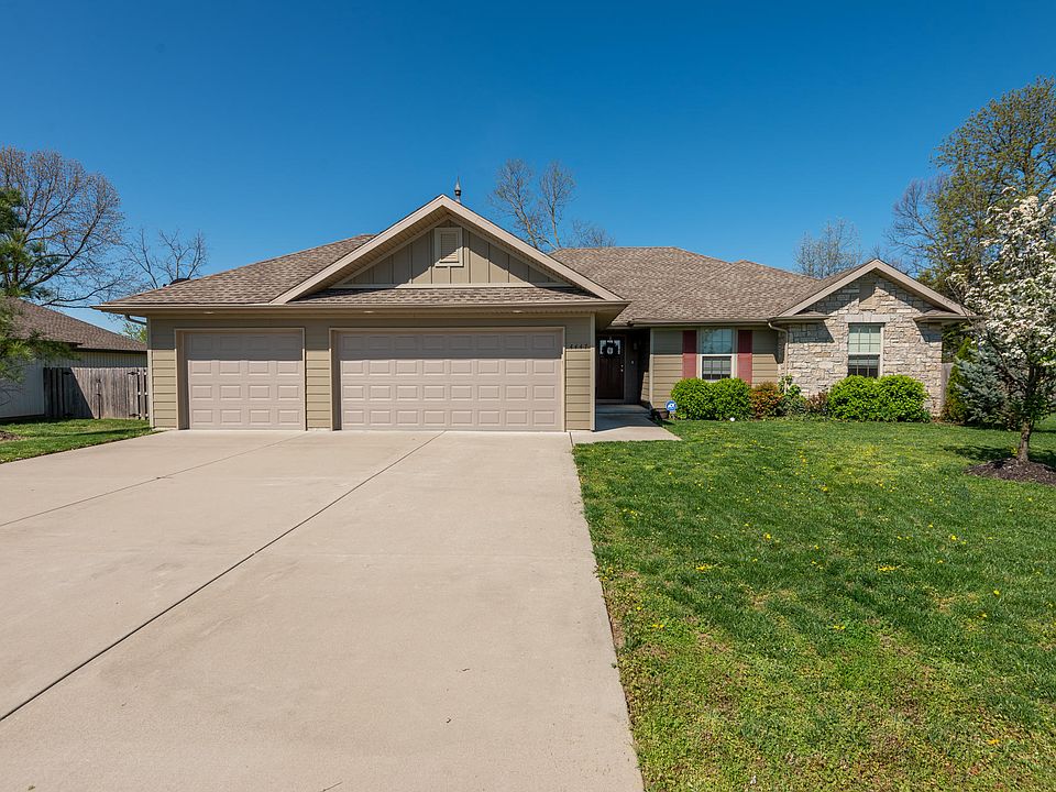 This 4 BR, 2 bath home boasts a designer open concept floor plan with executive level finishes. The great room & kitchen are wide open to each other. Hardwood floors throughout the area make for a great look & easy clean ups! The center island is a focal point of the kitchen. You'll love the granite counters, stainless appliances (gas stove) & the pantry cabinet. The dining area is accented by a wall design & lots of windows. The split bedroom plan offers privacy for the master bedroom. It is nice sized and has a wonderful master bathroom complete with jetted tub, walk in shower, granite dual sink vanity & tile floors. The walk in closet in huge! On the other side of the home are 3 more bedrooms & another bathroom. The back yard has a partially covered patio, mature trees & is privacy fenced. Bonus is the 3 car garage! Kickapoo schools. Put this one at the top of your list!