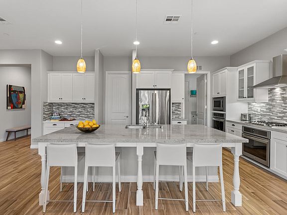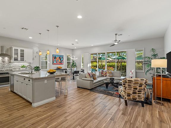 Welcome to Villa Portofino, Palm Desert's premier 55+ community. This designer-furnished home at 4447 Via Del Pellegrino offers the largest floor plan in the community, featuring 2344 square feet, 3 bedrooms, 2.5 bathrooms, and numerous upgrades. Enjoy quartz countertops, porcelain plank tile flooring, stainless steel appliances, modern fixtures, and a private, fenced-in rear patio with gate. Leased solar adds to the home's energy efficiency.Offered fully furnished, with a few exceptions (art and personal items), this home is move-in ready.Villa Portofino's amenities include an upscale clubhouse with concierge services, fitness center, yoga studio, movie theater, billiards room, meditation room, restaurant, bar, banquet facilities, and bocce ball courts. Residents enjoy a variety of complimentary activities such as fitness classes, card games, happy hours, and dances.Conveniently located near Eisenhower Medical Center, El Paseo, world-class golf courses, The McCallum Theater, Whole Foods, and more, Villa Portofino offers easy access to all the best the Coachella Valley has to offer.HOA dues cover clubhouse access, movies, expanded cable, high-speed internet, insurance (including earthquake), and exterior maintenance (roof, exterior painting, landscaping). Come experience the desert lifestyle at Villa Portofino!