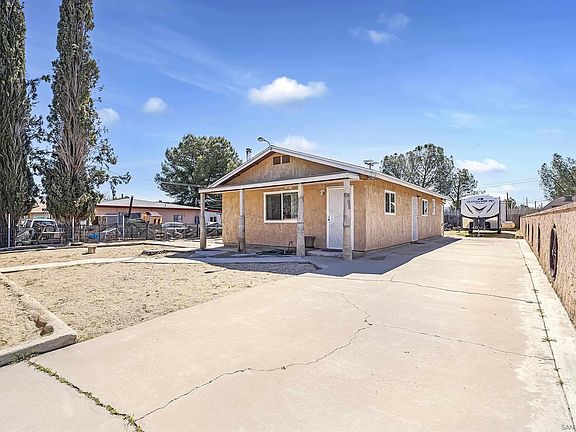 Oversized one bedroom + optional room and bathroom in Jacumba, home to the majestic natural hot springs and located on a quiet street, minutes away from Jacumba Lake, the newly renovated Jacumba Hot Springs Hotel, Boulder Park and Desert Tower. This solar powered home has an open living area, large kitchen and huge primary bedroom. Located on a large lot featuring sheds, RV parking and room to add an ADU. Enjoy the silence of this sleepy desert town through miles of hikes and revel in the star lit sky at night, just 60m east of San Diego. Property has been well maintained throughout the years. Current owner replaced the roof when they added solar. The wood burning stove in the living room quickly heats the entire home. All appliances including the electric washer and dryer convey. Complete with plenty of off street parking for your cars, boat and RV. Fully fenced yard for kids or dogs to enjoy. Low utility bills and low maintenance yard, ready for you to move in!