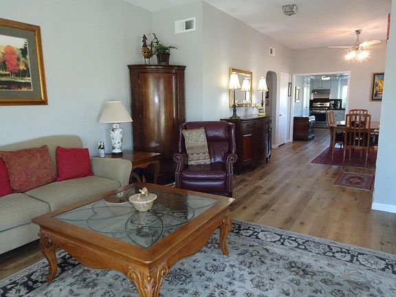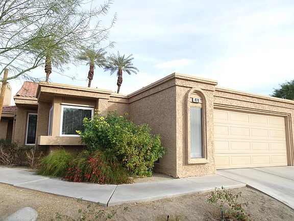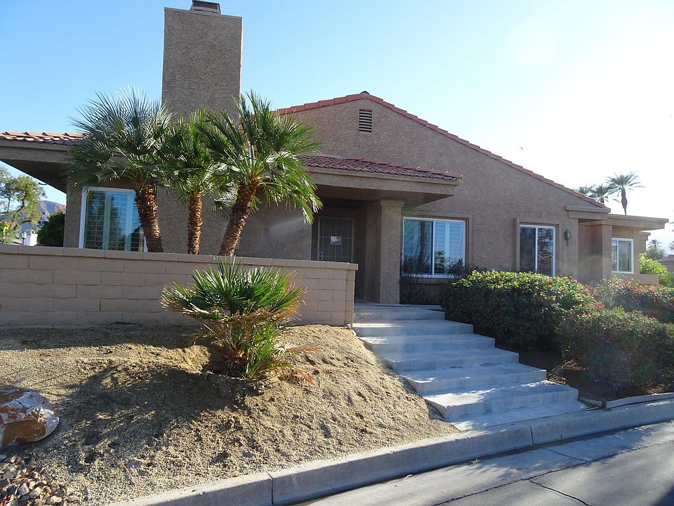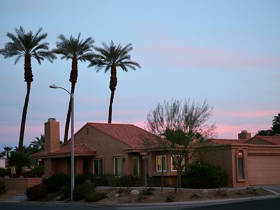 This beautifully remodeled former builder's model has the perfect location! Far from the noise of exterior streets, tennis courts and fountains but just a quick walk to the main pool and spa for a relaxing dip. Just behind the elevated wrap-around patio there's a quiet park like desert scape with a hiking trail and panoramic mountain views. The gorgeous interior has been upgraded with new paint and new deluxe vinyl plank flooring throughout. The immaculate kitchen features upgraded cabinets, counters and a pantry. The stainless steel appliances were replaced about two years ago. The entry door from the dining room has been expanded to open up the room. The remodeled baths are equally impressive. The master was remodeled just last year with new snow white dual vanity marble counters, shower tile work, and lighting. Hall bath cabinets and lighting have been upgraded and an energy saving skylight installed. Other energy efficient upgrades include new Low E double pane windows and custom plantation shutters throughout. Walking distance to food shopping and restaurants, Hidden Palms is centrally located and close to everything Palm Desert has to offer. HOA dues offers a great value with guard gated security, basic cable, trash pick-up, insurance, four community pools and a very active tennis and pickle ball community. Hurry! This one won't last! If you don't see a video tour attached to this lisintg ask your agent to send it to you today! (FYI Cannes is pronounced 'Can')