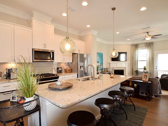 - Kitchen Features: Breakfast Bar, Pantry, View to Family Room, Stone Counters, Kitchen Island, Cabinets White