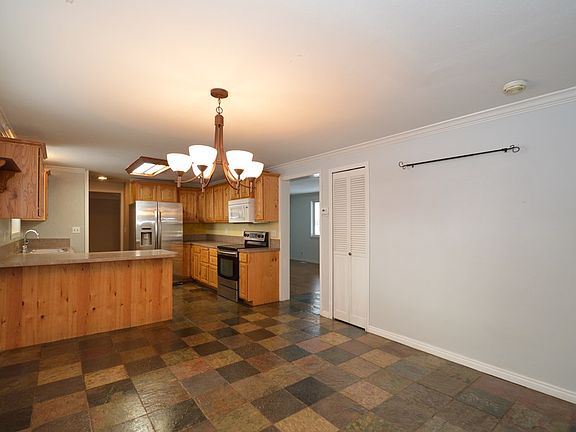 This clean home, on a private, oversized 1-acre lot, highlights a spacious single-level floorplan with enviable room for your household. The beautifully remodeled kitchen boasts updated cabinets, countertops & gorgeous slate tile floors, with an adjacent dining area delivering adequate space to accommodate all of your family as they gather around the table. This wonderful home supplies an abundance of room to comfortably gather; from the formal living room off the entry, with a free-standing stove, to the large family room at the back of the home, owners will love the endless options for effortlessly hosting large holiday celebrations. Additionally, an oversized master bedroom (privately positioned apart from other main floor bedrooms) boasts a large walk-in closet, ensuite bath & comes pre-wired for a personal theater experience to be enjoyed from the comfort of your own bed. The exterior space of this home is stunning. From the rural panoramic views, to the oversized tiered deck, firepit, mature trees & exterior storage shed, this space will leave you yearning to spend your free time outdoors. Want more? This home, vacant & ready for immediate occupancy, may qualify for no down payment, 100% RD financing when you buy!