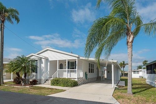 Take a look at this spacious Palm Harbor model home located in the beautiful 55+ community of the Waterside Club. With an abundance of natural light throughout, this home is loaded with great features and new updates, including new ceramic tile and pergo flooring, new ceiling fans, crown molding, new refrigerator, new garbage disposal and faucet, split A/C system, bathroom sky light, walk-in master closet, cathedral ceilings, interior laundry room and an attic fan to help keep the home cool. The updated large kitchen offers plenty of counter and cabinet space with pull out cabinet drawers, lazy susans, eating area, pantry and a moveable island with storage for your convenience. Outside you will find a 10 x 12 storage shed on the carport, front patio/porch, and is Wind Zone 3. The maintenance-free community HOA fees include lawn care, cable/internet, water/sewer/garbage, community center with fun social events, community swimming pool, recreational room with pool table, shuffle board, business center with computers, fitness center, library, and an amazing lakeside view. The home is a land lease with no property taxes. Plus, this is a pet-friendly community (under 40 lbs) with a fantastic dog park. Great for a second home with no rental restrictions. Easy access to Fresh Market, Publix, Post Office, plenty of shopping and restaurants alike. Boat lovers, only minutes to the nearest public boat ramp, De Soto National Memorial Park, Robinsons Preserve and the beautiful beaches of Anna Maria Island.