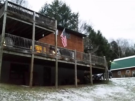 ABSOLUTELY BEAUTIFUL CEDAR LOG HOME AND A 30 X 50 BARN ON OVER 42 ACRES OF PARADISE. WELL BUILT HOME WITH A METAL ROOF, LARGE DECK AND A BALCONY TO TAKE IN THE WILDLIFE. INSIDE ON THE FIRST FLOOR YOU WILL FIND A GORGEOUS KITCHEN WITH HARDWOOD CABINETS, A DOUBLE OVEN AND A ISLAND, A COZY LIVING ROOM THAT IS OPEN TO THE DINING ROOM, A FIRST FLOOR BEDROOM AND FULL BATH THE SECOND FLOOR OFFERS AN OPEN WALKWAY THAT LOOKS DOWN ON THE LIVING ROOM, TWO BEDROOMS, ONE WITH SKYLIGHTS AND ONE THAT OPENS TO THE BALCONY, THERE IS A LARGE FULL BATHROOM WITH A STAND UP SHOWER, WHIRLPOOL TUB AND A SEPARATE SINK AREA. CERAMIC TILE, HARDWOOD FLOORS AND A STONE HEARTH ADD TO THE WARMTH OF THIS HOME. NOT A DRIVE-BY, MUST SEE INSIDE