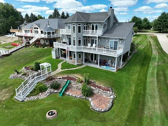 Landscaped yardFinished walk-out basementPrivate docksOffice spaceGame roomMultiple decksSandy beach