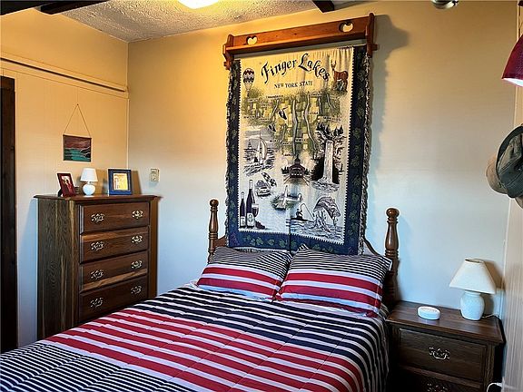 Drive down to your front door, not on a cliff, no stairs, level lot!!Situated in heart of the Finger Lakes Wine region this 2 bedroom, 1 bathroom cottage, anaerobic septic system, all with 70 feet of level frontage, with two walk in beach front areas, is ready for its new owners. Need additional sleeping space, the three season porch also can be used as well as it is equipped with a heating/air conditioning unit. Both the dock and boat lift are permanent and the other boat hoist is electric. No need to worry about buying furnishings as this comes completely furnished, all you need are yourselves and your water toys. Here is your chance to enjoy the lake this summer, don't pass it up! Seller verified square footage to be 738. OPEN HOUSE JUNE 25TH 1-3PM 2022-08-13