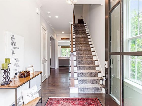 If townhome envy were a thing, this one would be the culprit. Welcome to 4448 Huffman Drive—an end unit showstopper nestled in the back of the neighborhood for added peace, & privacy With 3 bedrooms, 3.5 baths, and a finished 3rd-floor retreat, this home serves up space, style, and smart design with Roswell charm and Cobb County taxes. (Yes, you read that right—Roswell vibes without Fulton tax vibes.) Heads up, y’all—this home started life as a four-bedroom, but two of 'em got cozy and became a spacious two-bedroom suite. Don’t worry though, it can easily be split back into separate rooms if needed. Just say the word! Inside, the Concord Plan brings the wow factor with 10-foot ceilings on every floor, flooding the home with light and breathing room. The gourmet kitchen is pure Pinterest goals—think quartz countertops, stainless steel appliances, oversized island, white shaker cabinets, under-cabinet lighting, and a pantry that could double as a guest room. It opens wide to the cozy family room, perfect for couch flops and charcuterie boards. The third-floor media room/rec room is the cherry on top—complete with a wet bar, full bath with a frameless glass shower, and an oversized bedroom fit for in-laws, outlaws, or your favorite overnight guests. Head upstairs to your owner’s suite sanctuary, privately tucked away in the back of the home where you'll be greeted by trees, not traffic. Need a quiet place to work or binge your latest series? The sitting room with 9-ft barn doors has your back. The spa-inspired bathroom features dual vanities, a large walk-in shower with bench & niche, and a freestanding soaking tub that basically begs for bubbles and wine. The massive walk-in closet connects directly to your laundry room, complete with sink and upper cabinets—because life’s just better with laundry that makes sense. Don’t miss the Pottery Barn-worthy mudroom, epoxied garage floor, hardwoods throughout the main floor, and stair treads so pretty you'll almost enjoy climbing them. Located just 3 miles to Downtown Roswell, this gated community features a pool, clubhouse, outdoor fireplace, and walkable access to all your favorite shops and restaurants. Whether you’re hosting, relaxing, or doing a little of both, this one checks every box—and then some. In short? She’s the full package. Come fall in love.