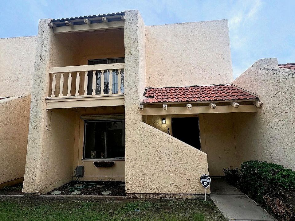 Welcome to this move-in ready 2-story townhouse in the desirable Villa Charme Five community! Offering 2 spacious upstairs bedrooms, each with a private bath and walk-in closet, this home provides comfort and privacy. The primary suite includes a private balcony, perfect for relaxing. Downstairs, enjoy a bright living room, updated eat-in kitchen with freshly painted cabinets, a convenient half bath, and tile flooring throughout.