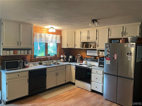 Welcome Home! This beautifully maintained log home is updated with over 700 sq ft of additional living space in the lower level. Sitting on just over 3 acres with a breathtaking view of Oneida Lake. Including solar panels and large private area with fire pit. Open concept kitchen/living area absolutely perfect for family and entertaining. Updated flooring throughout every inch of the home! Completely finished basement features a foyer, private laundry room, hunting room and a HUGE living space. 2 car detached garage for extra storage. Solar panels make for cheap and easy living throughout those summer months. Ideal location, just a short drive to the village and thruway. Home is contingent on sellers finding suitable home