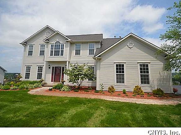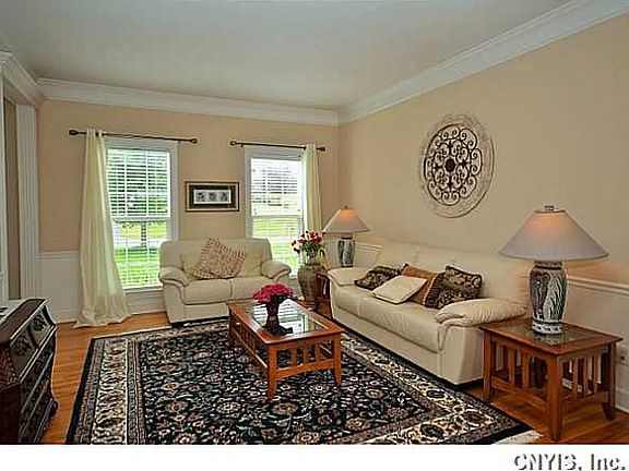 PEACEFUL,SPECTACULAR,PANORAMIC VIEWS from 3 LEVELS. of this Manlius dream home.Enjoy fabulous sunsets from wall of windows in morning rm,spacious deck,&patio.Hardwd flrs thruout. Lovely dentil moldings & trim. Family rm w/gas FP,built-ins&coffered ceil.Double doors lead to large Master Suite w/gas fireplace, built-ins, his&her w/in closets,trey ceiling. Fin.1200sqft lower level(teen/in-law suite?) has 2nd family rm, full bath, 2nd kitchen, insulated hardwd&granite floors,storage area. W/O to brick & cement patios (for hot tub?) Fruit&flowering trees,perennial gardens. Move in/enjoy.
