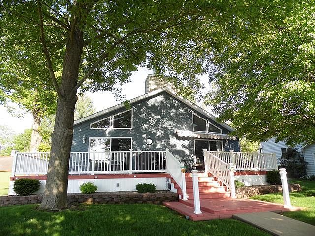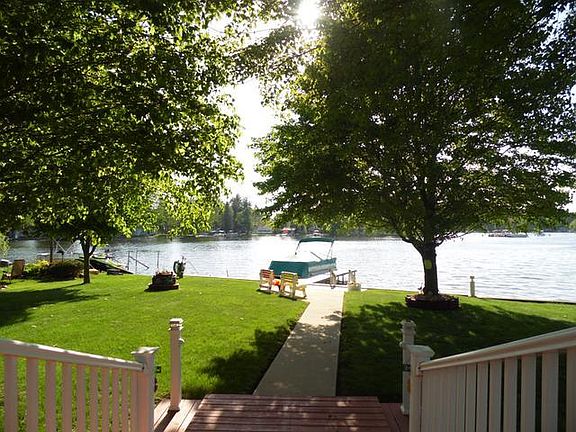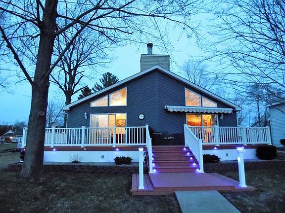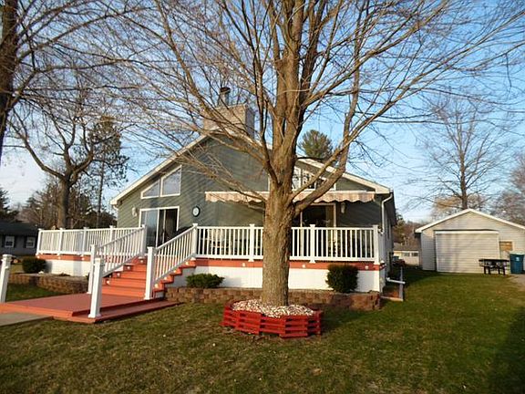 Custom built 3bd/2bath single level Chalet on all sports Wiggins Lake! This one owner home was carefully crafted for lake living in mind: level yard to the water, easily maintained manicured lawn, newly paved walkways and outdoor lighting for finding your way home after that sunset cruise! From the breathtaking sunset views of Summer to the scenic shorelines of Fall, this current year round home is the place to be all 4 seasons. The detached two car garage has plenty of room to store the boat and an additional 12x5 add-on for the smaller toys! Updates within the last few years include new 35yr roof, hot water heater & water softener. All appliances included with sale. This home is turn-key!