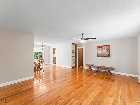 Located on a large lot beside the golf course, this home offers scenic views and generous living space. Inside, you’ll find hardwood floors, fresh paint, and oversized rooms filled with natural light. The kitchen features laminate countertops, tile floors, and plenty of cabinet storage. A massive sunroom overlooks the fenced backyard and above-ground pool. The primary suite includes a walk-in closet, jetted tub, and separate shower. Bathrooms are clean and functional with room to update. Downstairs includes a full unfinished basement and 2-car garage. Outside, enjoy the large deck and peaceful surroundings.