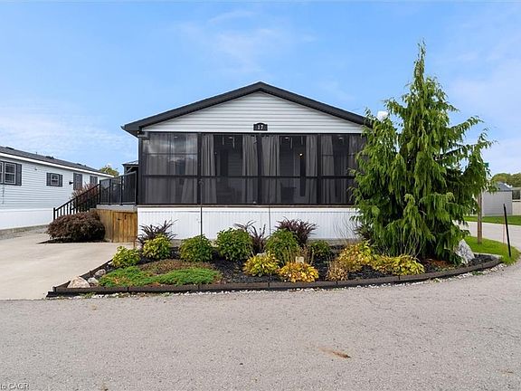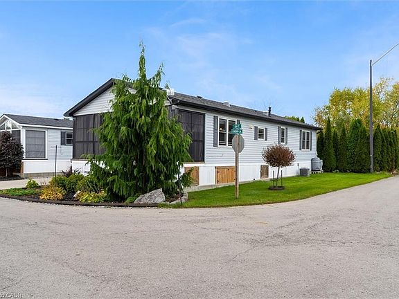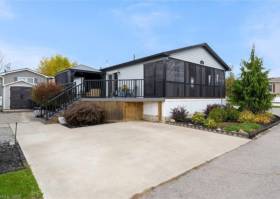 Standout Living in Lost Forest Park! Set yourself apart in this one-of-a-kind 2-bedroom, 2-bath modular home, offering a rare combination of cathedral ceilings, open-concept design, and resort-style living in Burlington’s exclusive gated Lost Forest Park! Inside, the soaring vaulted ceilings create a bright and airy feel, while the stainless-steel appliances and thoughtful layout make everyday living both stylish and functional. With two full bathrooms, a crawl space for convenient storage, and even a generator for peace of mind, this home is designed with both comfort and practicality in mind! Step outside to your very own retreat including a wrap-around porch with an inviting sunroom adding 147 sq. ft. of covered enjoyment year-round and overlooking the stunning gardens! Enjoy cozy afternoons in the charming gazebo or quiet evenings under the stars from your comfy deck! It’s the perfect spot to unwind and take in the beauty of your surroundings. It’s a space designed for both relaxation and entertaining! Best of all, this home is set on a private corner lot, offering extra space, quiet surroundings, and enhanced privacy, making it one of the most desirable locations in the park! A handy storage shed adds extra functionality, while the double car driveway makes parking and manoeuvring a breeze! Beyond your doorstep, you’ll enjoy all the benefits of Lost Forest Park living including a gated security, a seasonal pool, walking trails, community centre, and serene forested surroundings! With low land lease fees, this home is a fantastic choice for first-time buyers, downsizers, or those ready to travel and enjoy life without the stress of high maintenance! This isn’t just another listing! It’s a lifestyle upgrade in one of Burlington’s most unique and welcoming communities! Don’t miss your chance to call Lost Forest Park home where nature, comfort, and convenience come together beautifully!