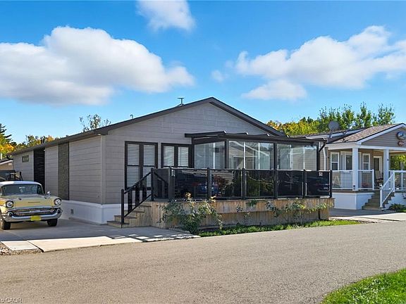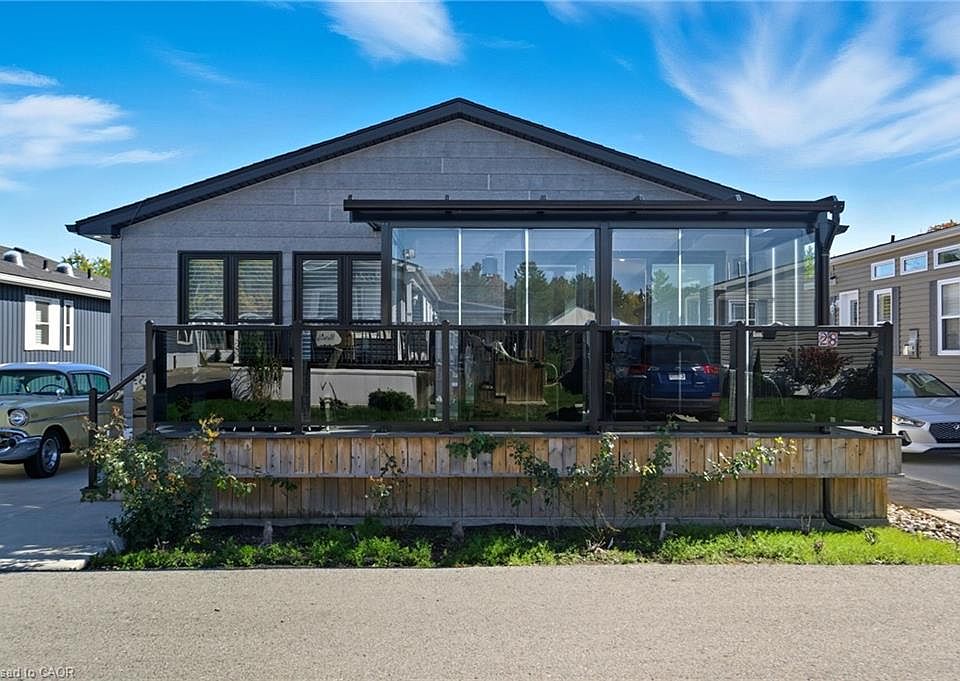 Welcome to 4449 Milburough Line, #28 Ash Street in Burlington — a beautifully maintained 2-bedroom, 2-bathroom home located in the quiet and friendly community of Lost Forest Park. Less than five years old, this modern home features an open-concept layout with an oversized two-tone custom kitchen island, perfect for entertaining. The spacious kitchen offers ample storage, while the separate dining area and built-in electric fireplace create a warm and inviting atmosphere. A dedicated office space provides privacy for work or hobbies, and pot lights throughout add a bright, contemporary touch. Step outside to a stunning Lumon-enclosed 3-season sunroom, perfect for relaxing, hosting guests, or stargazing on clear nights. Lost Forest Park offers peaceful surroundings and a strong sense of community, complete with amenities like an in-ground swimming pool, horseshoe pits, and beautifully landscaped grounds. Whether you’re looking to downsize or simply enjoy a tranquil lifestyle with the convenience of modern updates, this home offers the perfect year-round retreat.