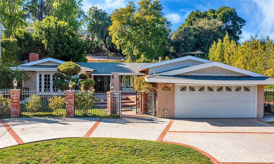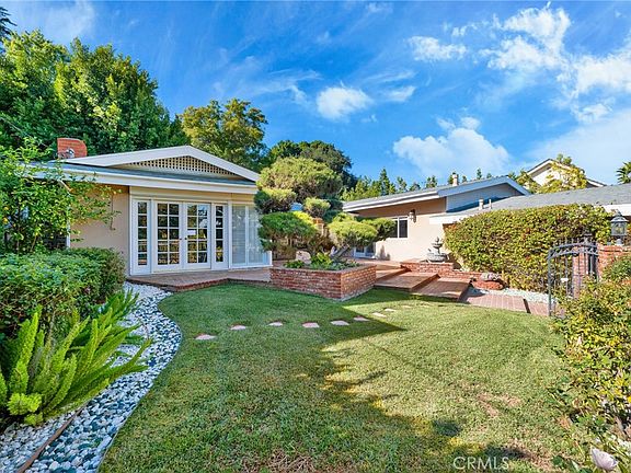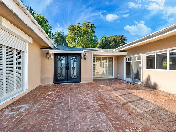 Delightful ranch-style, single-story, 3 bedroom, 2 bath, 2,529 sq ft home in prime Encino neighborhood, south of Ventura Boulevard. Appealing and convenient circular drive with brick accents and private, wrought-iron gated front courtyard with direct access to front door, kitchen, and family room, making it the perfect place to entertain or dine al-fresco. Custom double door entry opens to living area featuring abundant natural light, wood floors, recessed lighting, and crown moldings throughout. Sizable living room boasts large fireplace and hearth, wraparound windows with plantation shutters, and French doors opening to front courtyard. Formal dining rooms offers tray ceiling, mirrored wall, and floor to ceiling windows with plantation shutters overlooking the front courtyard as well. Chef’s kitchen features granite countertops, ample wooden cabinets, built in appliances, large kitchen island with built in range, wine fridge, and breakfast bar. The kitchen forms part of an open plan great room with good-sized, informal living area with sliding glass door access to front courtyard. Down the hall, the luxurious master suite enjoys a considerable walk-in closet, and sliding glass door access to back patio and pool area. Remodeled, en-suite master bath offers double sink vanity, soaking tub, separate shower with built-in bench, and sliding glass door access to the back yard. Two additional sizable bedrooms with ceiling fans and large windows share a ¾ hall bath. Dedicated laundry room off kitchen with direct access to 2-car garage. Backyard features pergola covered patio area, built-in BBQ area, and “pebble-tech” style pool, with privacy ensured by brick walls and high hedges. Situated in the highly desirable Lanai Elementary school area and close to shopping, dining, and recreation.