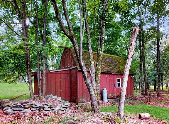 2 STORY CONTEMPORARY HOME ON .78 ACRES W LARGE OUTDOOR BARN IN BUSHSKILL, PA. Built to last, this enormous 4 BR, 2 Bath home features, central HVAC, freshly painted walls, new vinyl and carpet flooring, cathedral ceilings and skylights throughout, an enclosed front porch, a large sunken living room w a brick faced freestanding wood fireplace, an upgraded eat-in kitchen w new S S appliances, custom granite countertops, and a snack bar. There is also a formal dining area w sliding glass doors that lead to a newly stained back deck, a first floor master bedroom w a private ensuite bathroom, 3 more spacious bedrooms, a jacuzzi hot tub room, an upstairs loft area, and an office study room. EAST STROUDSBURG AREA SCHOOLS, CLOSE TO I-80 and DINGMANS BRIDGE FOR QUICK and EASY COMMUTE TO NJ and N