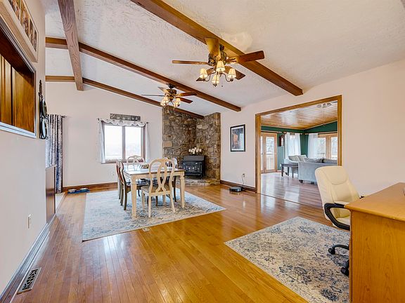 This contemporary-style home sits on 10+ wooded acres and has access to Claytor Lake! You will enjoy the mostly wooded lot, beautiful views, and privacy from all sides of this home. The large open floor plan has vaulted ceilings and beams you will love. The master bedroom has access to the side wrap-around porch, an updated bath, and a large walk-in closet. The main level also has an updated hall bath and two nicely sized bedrooms. You will find a large family room and a fourth bedroom on the lower level. There is also a single-car garage, workshop, storage, and sauna in the basement area. The lot has deeded access to a dock, boat slip, and picnic area. Seller offering a Cinch Home Warranty.