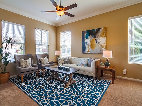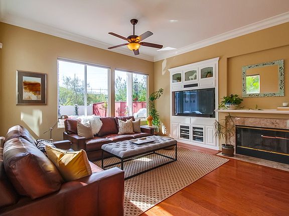 MUST SEE!! Unique south facing, light, bright 4 bed 3 full bath home in The Cove in Torrey Hills w/ full bed/bath downstairs; perfect for in-laws or guests! Stunning crown molding thru out the entire home, beautiful custom kitchen, custom built-ins & wrought iron gate w/ large yard, make this house a showstopper! Located on an elevated, cul-de-sac Lot minutes from Ocean Air Park & School, shopping center, beach, UCSD & Qualcomm, this rare floor plan w/the garage in the rear doesn't come up often!