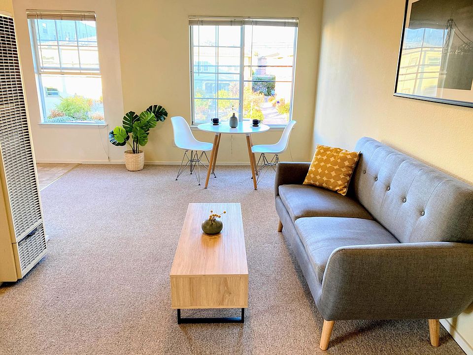 About This Apartment Sunny top floor corner unit 1 bedroom and 1 bathroom apartment with secured gated access. Clean and well-maintained private living and working from home space. Property is rent control so no surprise increases after the first year! Features include: - Recently renovated with new paint and carpet - All new LED lighting throughout - Private gated entrance and stoop all to yourself and not shared with other tenants - Large windows provide lots of natural light - 9 feet tall high ceiling create a spacious and airy feeling - Spacious living room offers the flexibility to create a home office, additional storage, etc. - Kitchen features gas stove, refrigerator and dine-in eating space - Parking available for additional fee - Pet-friendly with extra deposit; no additional monthly rent required - Laundry on-site - Non-smoking building - Use of shared large outdoor patio space - Application Fee: $50 - Security Deposit: Equal to one month's rent on approved credit Minimum FICO score of 720 - Lease Term: One (1) Year - Income Requirement: Income equal to 3 x rent or co-signer - Utilities: Trash, recycling and compost included - Parking: One car parking space available for $95/month - Pet Policy: Cats and dogs allowed with $500 deposit per pet; no additional monthly rent required. Breed and weight restrictions may apply; inquire for further information.