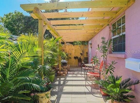 Little Slice of Paradise in this turnkey-furnished island Villa with lush private yard. This one bed/one bath, fully updated unit is light and bright with a private front patio and a side patio and grill off the kitchen. The large bedroom has plenty of room for the king size Temperpedic Memory Foam Bed with super high base for additional storage. There is a full size washer/dryer in unit and it can sleep 4. This is a wonderful little island getaway with an Old Florida feel perfect for yourself or as a ready to go rental property. Launch your wave runner at the boat ramp across the street! Tennis courts and doggie park on these grounds and Seaside Gardens has a large community picnic area and community dock.