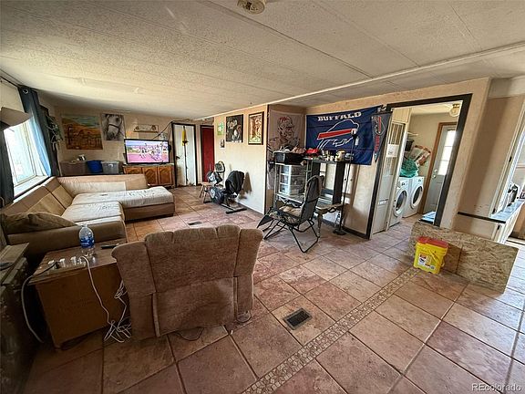 Discover this charming 3-bedroom, 2-bathroom modular home in Deer Trail, CO, nestled on 0.28 acres of peaceful land. Featuring brick and stucco construction with a brick foundation, this home offers durability and classic appeal. Inside, you'll find tile and carpet flooring, a spacious living area, and a convenient laundry space off the living room. The kitchen comes equipped with a fridge, dishwasher, and stove, while double-pane windows enhance energy efficiency. With a crawl space basement and a driveway that accommodates up to 3 vehicles, this home is move-in ready. Utilities include electric, water, and gas. Don’t miss out on this great opportunity!