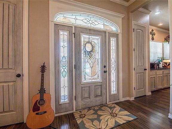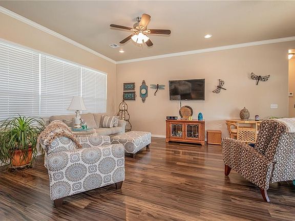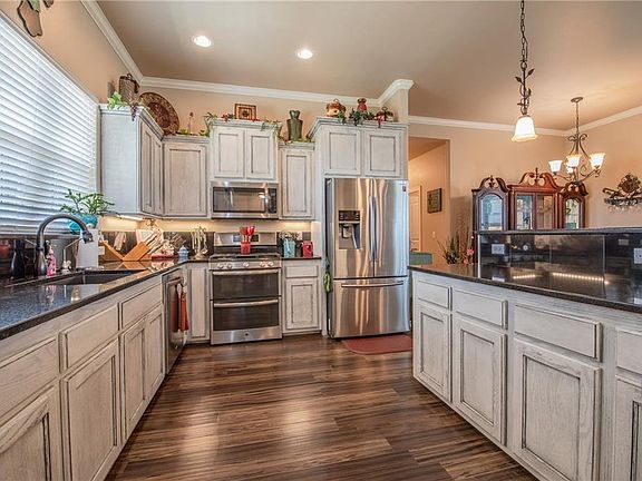 Walking/riding distance to Blanchard Schools, Storm shelter, Landscaping, Full wrap guttering, Privacy fence , Large Covered Patio, Large Covered Porch, Water softener, Reverse Osmosis Water purifier, Granite countertops, Breakfast bar, Custom Painted Cabinets, Stainless Appliances, Mud Room, Master with Walk-in closet, dual vanities, garden tub, and shower, Split floor plan, Wood Floors, One Owner