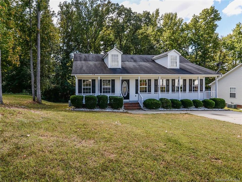 RANCH home w/Full Front Porch! OPEN Floor-plan! HUGE Great Room w/Vaulted Ceilings & Gas Logs! Kitchen is UPDATED w/Granite & SS Appls! Laundry Room features shelving for a pantry use. Split Bedroom Plan too! Master Features trey ceiling & WALK-in Closet. Master Bath features Granite Tops,Dual Vanities w/Garden tub-shower combo! Guest beds located on the opposite side! Both great size rooms, w/Guest Bath single Granite vanity. NEW Deck off the back! NEWER Roof! Flat Yard! Close to shopping!