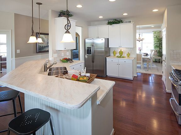 Well-appointed facade with stone details Convenient single-story living Spacious, family room with a six foot extension Stunning kitchen with granite countertops and gas range Low-maintenance, 12x14 deck for outdoor entertaining Luxurious hardwood floors throughout the first floor