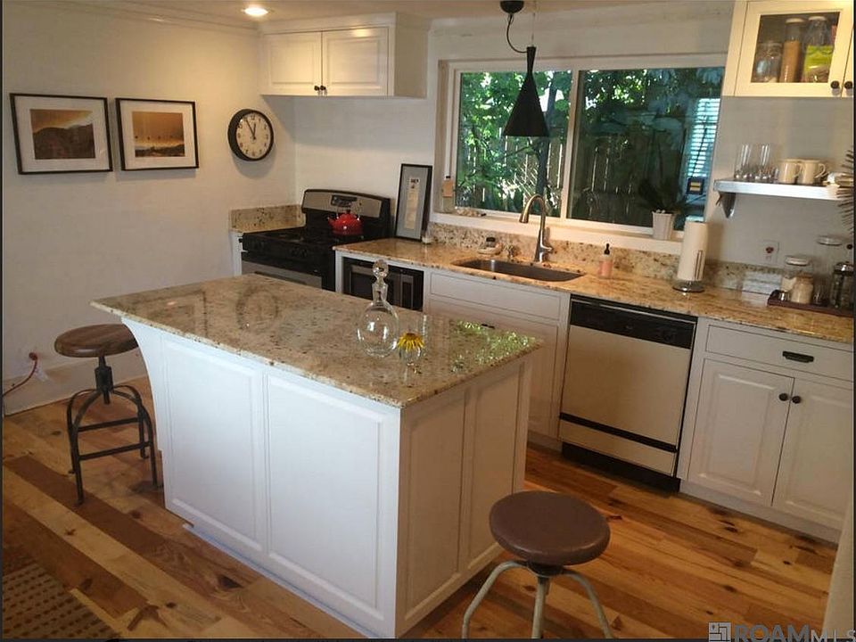 1 bedroom standalone first floor apartment behind home on Beverly in Ogden Park. Home has wood floors, central air and heat, nice sized kitchen with breakfast area, granite, stainless appliances, dishwasher, washer and dryer and includes water, gas and lawn care. Located in mid-city arts district, just minutes from LSU, downtown, interstates, shopping, dining and everything else.