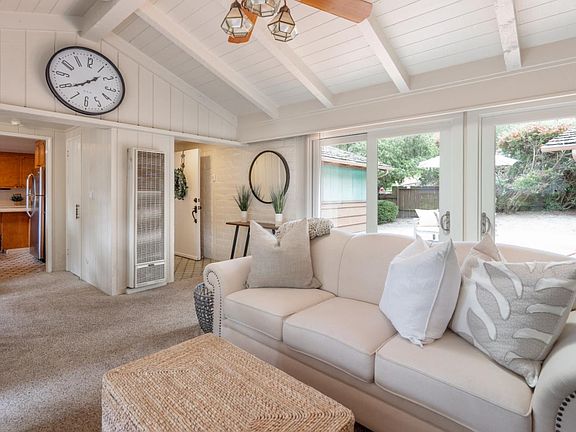 Discover the charm of this three-bedroom home in Pacific Grove! Step into the light-filled living room adorned with open beam ceilings and fireplace with natural brick surround, creating a warm and inviting atmosphere. The kitchen is a delight, featuring tile countertops, abundant cabinets, and a breakfast bar for casual dining. Youll find built-in storage throughout the home and spacious closets in the bedrooms providing ample storage. Outside, enjoy the large, enclosed, private backyard with an expansive patio and room for gardening accessed through sliding glass doors from the living area or secondary access from the bedroom hallway. The location of this home is truly convenient, offering easy access to downtown Pacific Grove, Pebble Beach, Carmel, and the Monterey Peninsula.