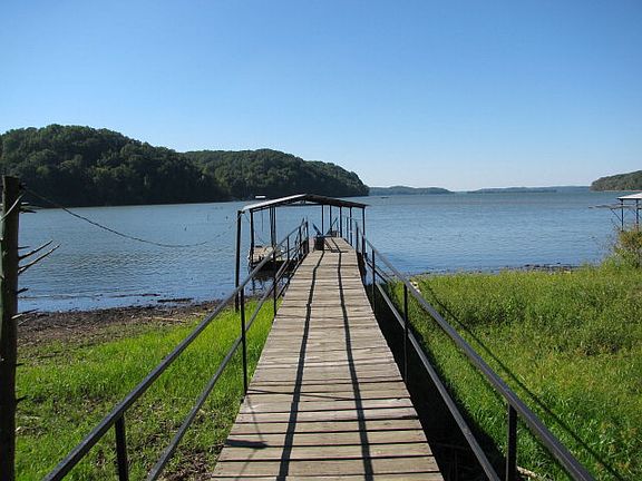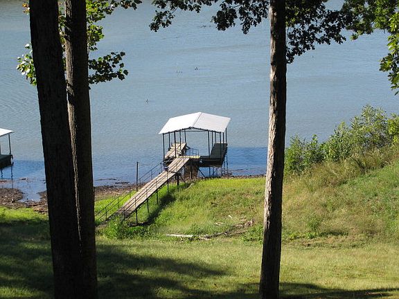 REDUCED!!!! Seller is ready to sell!!!! Kentucky Lake waterfront w/dock in Standing Rock Bay. Gentle slope to water. Gravel drive down to dock. Dock is covered, one slip with electricity and water pump. 2/2 with full finished basement. Large picture windows in living room. Fantastic view of Kentucky Lake. Fish cleaning station. Detached 1 car garage/workshop. Large 2 bay lean-to for boat storage. 2 car detached carport. Outside entrance to basement. Covered breezeway. Rear deck. Private. Great location! Home has lots of potential. Subject to TVA building setbacks.