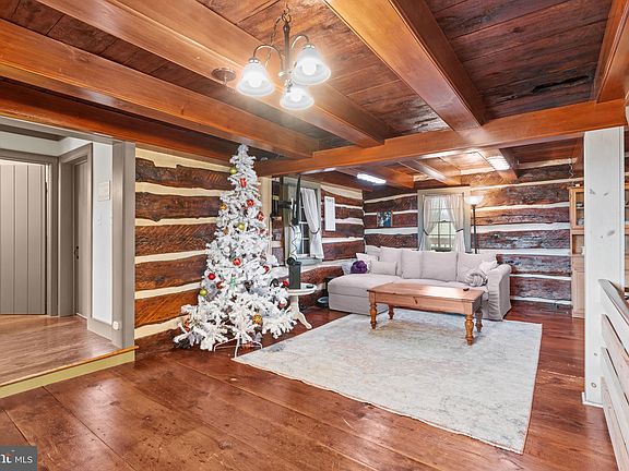 Beautifully restored 1800's log farmhouse, with newer addition which includes a primary bedroom w/full bath, powder room, and basement. A new septic drain field was installed 2024. A new full-house water filtration system and HVAC unit were installed in 2023. New windows were installed in 2022. The house features a wraparound front porch, back patio, multi-car garage/out building on over an acre of ground. During the remodel many historic features were preserved. Wood plank floors, exposed logs and beams, and beautiful finishing touches are part of this home’s charm. This home is unique and is a must see! Call today to schedule a showing!
