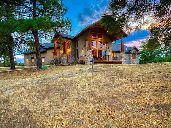 Located in the exclusive area of Timber Ridge with Mountain views, paved roads, extremely convenient to grocery store, churches, hospital and more is your ideal mountain getaway. Nestled in the trees and backing to 14 acres of greenbelt / open space is this majestic custom built home with main living and master on the main. The entrance / foyer is elegant, yet welcomes you to this fully furnished home (to include plates, utensils, pots, pans) and everything you can think of to move right in. A grand staircase and gorgeous real wood flooring throughout, beautiful open floorplan with double sliding glass door access to your covered deck, ideal for entertaining and views of the mountains. This sets it apart from the rest. Enjoy your favorite beverage while setting on the deck, listening to the wind through the trees, and, watching the wildlife meanders through this property. This has been an elk migration path for heard of deer and elk to settle in or pass by. This living room was thoughtfully designed with floor to ceiling impressive stacked stone gas fireplace, open to the dining area with a built in hutch. The gourmet kitchen has a mural cut into the backsplash depicting Pagosa's mountain lifestyles. Granite is throughout this home. The hallway leads to the large office which can be used as a guest bedroom and across from this is a guest room with it's ensuite. Thoughtfully designed is the bath/shower that has been raised for your convenience & granite double sinks. Down the hall leads you to the large master complete with gas fireplace and huge walk in closet with built-in's. The master bath has double sinks, granite of course, large shower and soaking tub. Now, let's go up the sweeping staircase, to the family room area and full bathroom, along with an area that is currently used for overflow company. It has a closet, privacy and room for several beds and of course the bathroom. In addition, there is another area with a space for more storage. Downstairs is a large laundry room just off the kitchen and access to the 3 car garage that is designed for a texas style party, fully painted, finished floors and wall sconces along with regular lighting and fans to keep you cool in the summer. This stays warm in the winter as it has 100 gallon water heater that is heated with a major with ETS (Electronic Thermal Storage System -(super energy efficient). Also in the garage is a workbench and a special designed drains for each parking space to catch the snowmelt when you pull in.There is so much storage in this home, you probably will not be able to fill it. The stairs that are in the garage lead upstair to the overflow guest space in the home. I love this home and the location being moments from the grocery store while feeling like you are tucked in the mountains. The exclusive Timber Ridge subdivision is known for it's gorgeous homes and reasonable HOA fees. This is also an equestrian community with trails and paths to ride. We also have the clubhouse that is used for get togethers with neighbors and friends for your use. I love being able to walk out your back door and take your dogs for a walk or stroll along the greenbelt paths or snowshoe /cross country from your your home. It doesn't get much better than this. Large enough for family and friends yet, feels perfect for just you. Make sure this is on your list, you'll be glad you did.