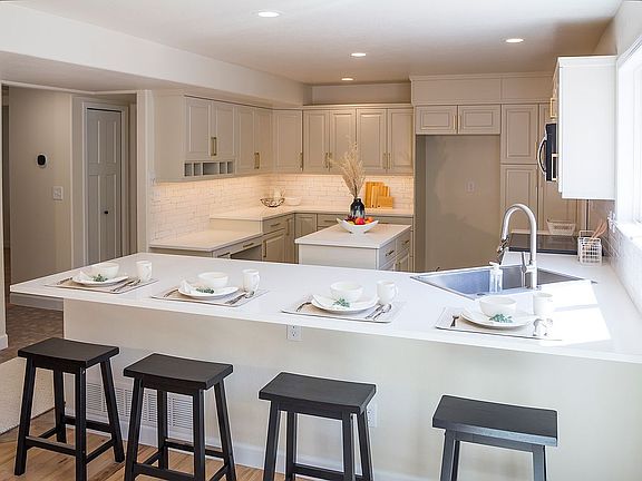 Updated to balance both modern and traditional tastes, this 2-story home is better than new with mature landscaping and sprinkler system. The large, spacious kitchen is loaded with beautifully painted cabinets and all new: Quartz countertops, stove with induction cook top, stainless steel sink with faucet, disposal, and bright, under-cabinet lighting. Enjoy the convenience of a main level laundry room, sitting at the kitchen desk, eating from the huge, roomy peninsula, or serving your favorite dish from the island.