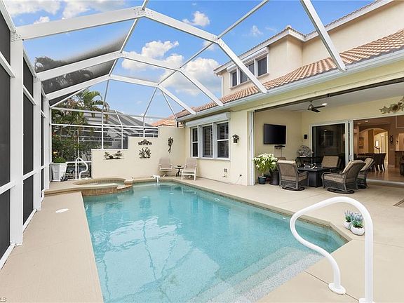 West of U.S. 41 and Vanderbilt Drive, this spacious pool and spa home offers lake views and sits on a cul-de-sac near gulf beaches. The five-plus-bedroom retreat showcases numerous upgrades, including a grand great room overlooking the pool and spa and new outdoor kitchen. The first-floor primary suite boasts a remodeled bath, walk-in shower, soaker tub, dual sinks, custom cabinets, plantation shutters and more. Also on the first floor is a guest suite, storage room, oversized garage and plantation shutters. A beautiful kitchen features newer appliances, granite countertops and a large island. Upstairs, find three bedrooms, a full bath, family room, and new flooring. Roof ion 2018, zoned air conditioning, hurricane protection and Eden on the Bay amenities such as a pool, club room and fitness center complete this home. It's close to shops, dining, beaches and trails, offering an indulgent lifestyle.
