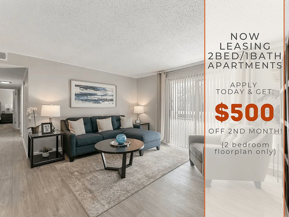 - Special offer! Receive $500 off the second month's rent (2 bedroom only) + waived admin fee for a limited time!
