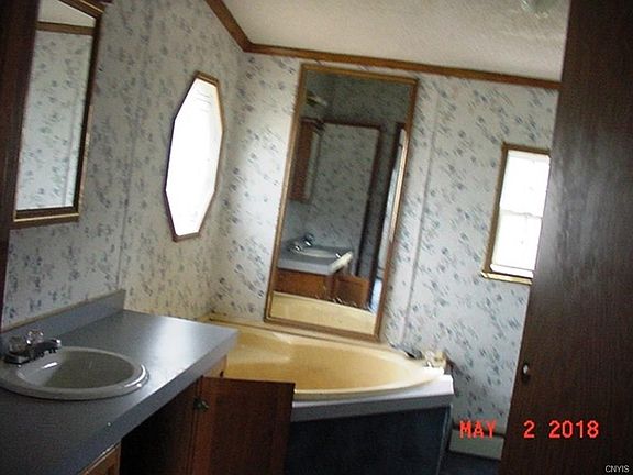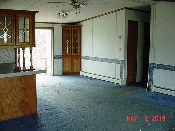 Subject property is a double wide manufactured home it's going to need repairs but is unusual because it has a full unfinished basement. This home has a forced air furnace and a hot water baseboard heat system, both are sold in as is condition.