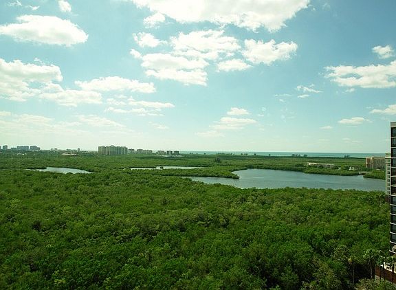 Three bedroom, three bath end unit available on the 16th floor in Montego at Cove Towers. Features include 10' ceilings and sliders. The 16th floor is one of only three floors that offers 10' ceilings. Also features tile flooring, custom kitchen with GE Profile appliances and tumble marble backsplash. This unit includes two parking spaces side by side which is rarely available. Amazing panoramic views of the Naples skyline, Gulf, bay & preserve are featured from this unit. Membership to the Calypso Club is included and offers a state-of-the-art fitness center, resort style pool, media center and more! Fantastic location!