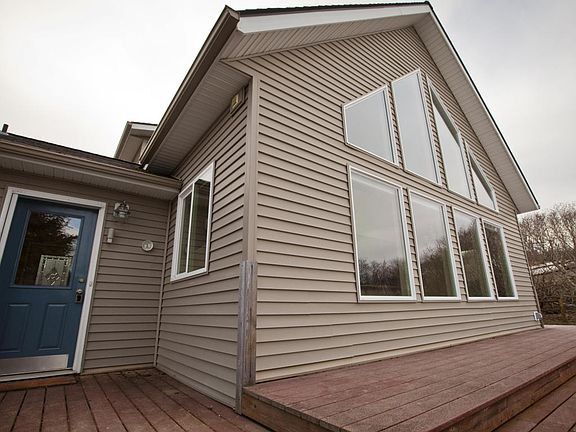 Beautiful chalet style home tucked in a private wooded area. This 5 star energy home holds incredible upgrades including a new exterior deck and beautiful landscaping. Home includes both vaulted ceilings and an incredible master suite. The living area invites amazing natural lighting with numerous large windows,home is heated with Natural Gas and has a private well!