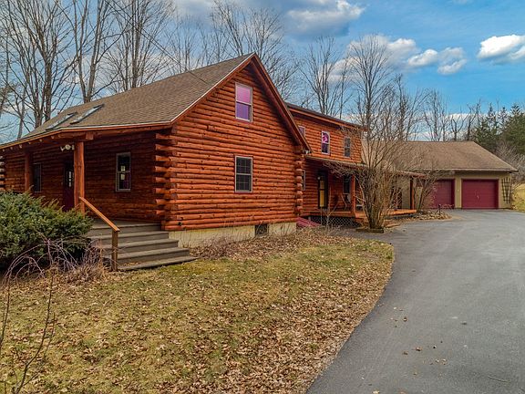 Ever dreamed of owning a log cabin? Well this stunning log cabin is more than just a home; it's a sanctuary where you can escape the hustle and bustle of everyday life. Nestled on 9.8 acres of land, this home offers privacy while still being within easy reach of amenities and attractions. This log cabin was just refurbished to the tune of over $30,000! Old logs were removed and replaced with new ones, new chinking and new stain. Take advantage of the outdoors and enjoy the two covered porches. The heart of the home is the custom kitchen featuring a large center island, granite counters, gas range stove and a wall oven. Not to mention the extend countertops giving plenty of room for cooking and entertaining. There is a wood burning fireplace right off the kitchen that leads to a sitting area. The living room highlights the beauty of a log cabin with exposed wood on the vaulted ceiling and skylights that add an open feel. Large primary bedroom with two walk in closes and an ensuite. Two addition bedrooms on the second level along with a loft area and another bathroom. Garage has two bays for vehicles but there is plenty of space for storage and a workbench area. Basement has a large workshop area wired with extra electrical outlets. There are too many wonderful features of this beautiful home to mention so come check it out in person! Showings being at the open house - Saturday March 16th 10am-1pm and Sunday March 17th 10am-1pm.