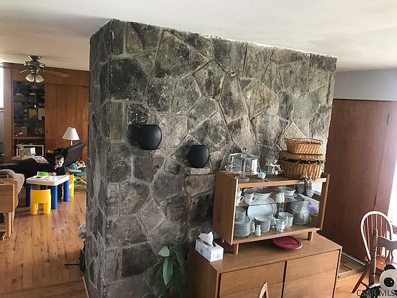 One of kind Modified Ranch with a swanky 1960's vibe come see, teak wood throughout. Open floor plan. Large stone gas fireplace to living room. Large picture windows in main living area. Over 1/2 acre corner lot with privacy out every window. Owner is in the process of updating a few items but will finish before closing. Great location close to shopping, schools, hospitals ect. Sewer will be updated by owner before closing. Home to be sold AS-IS.