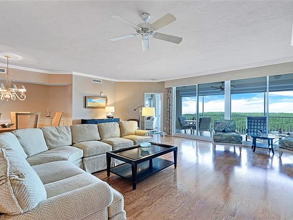 Looking for a beautiful waterfront condominium w/big Gulf views? This spacious 5th fl. condo has 2677 SF, new hard wood floors throughout, inc. bedrooms & den. Enjoy the east veranda off kitchen, a perfect spot for coffee as the sun comes up on a new day. The spacious kitchen features loads of cabinet space & walk-in pantry. A west facing lanai w/dramatic views of the Gulf of Mexico, and overlooks white sandy beaches of Wiggins Pass. Never miss a sunset from your own private place in paradise. This open & airy Commodore fp features oversized rooms, w/nine-foot ceilings. A spacious master suite features LARGE walk-in closets plus sumptuous master bathroom! Property has whole house water purification system. Residences of Pelican Isle are a hidden gem in Naples - a low-density, 15-A Island in the heart of all the action! Membership at Pelican Isle Yacht Club is available to buyers at the Residences. Lovely Club dining room & bar are a hot spot for gathering w/friends & fun social events. Tennis & pickle ball courts, plus full excelsis facility for members top off this amazing lifestyle in paradise! Beach shuttle to Delnor Wiggins & Barefoot beaches are just 5 minutes away!