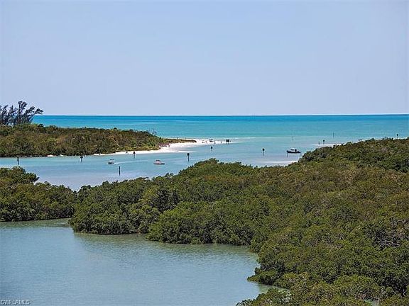 Situated amidst the estuary waterfront, this perfectly refined chic, pristine residence provides the ultimate framework for the expansive, stunning waters of The Gulf of Mexico. The thoughtfully designed floor plan showcases endless views from virtually every room! This sky home offers the space, functionality and privacy afforded a lavish, single family home, but with the innumerable advantages offered by an amenity rich luxury waterfront condominium. The interior living space showcases rich wood flooring covering an extraordinary great room, dining and master, two terraces, private guest rooms, and a centrally located gourmet kitchen and breakfast room with panoramic views. Pelican Isle offers its residents such amenities as community pool, guest rooms, tennis courts, club room, gym with sauna and steam. Pelican Isle offers Views, Price, Club next door and the full Naples lifestyle! The optional private membership at the island's member-owned Yacht Club includes a pool and spa, tennis and pickle ball, fitness center, canoes, kayaks, paddle boards, fine and casual dining, many social activities and a boat shuttle to the beach! Under building parking #24, large storage.