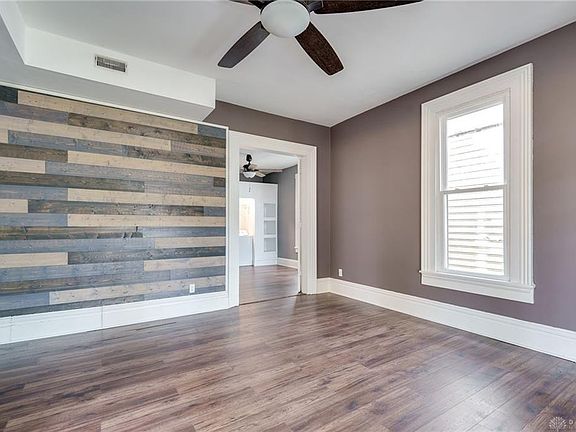 This charming historical home offers both elegance and convenience, nestled on a serene side street with easy access to downtown. The front entry welcomes you with its classic beauty, setting the tone for the rest of the house. Inside, you'll find a spacious first floor with high ceilings, enhancing the feeling of openness and light. The home features three comfortable bedrooms and two full bathrooms, plus an additional half bath for guests. The kitchen is a highlight, boasting ample counter space with custom granite countertops and stainless steel appliances, perfect for both everyday meals and entertaining. Recent updates include a brand-new HVAC unit and main water line, with additional improvements over the years such as updated plumbing, flooring, and fresh paint inside and out. The fenced-in backyard offers privacy and space for outdoor activities, and off-street parking is conveniently available at the back of the property. This home combines historical charm with modern amenities for a truly inviting living experience.