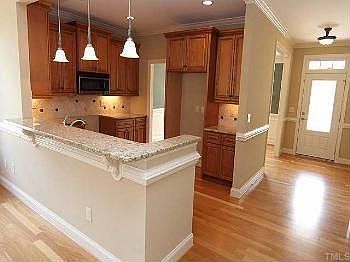 Lovely new home - one of 147 single family home sites at The Village of Aversboro right in the heart of Garner. All homes are brick and vinyl ranches. This particular one has an open floor plan and lots of crown molding. The bright living room shows